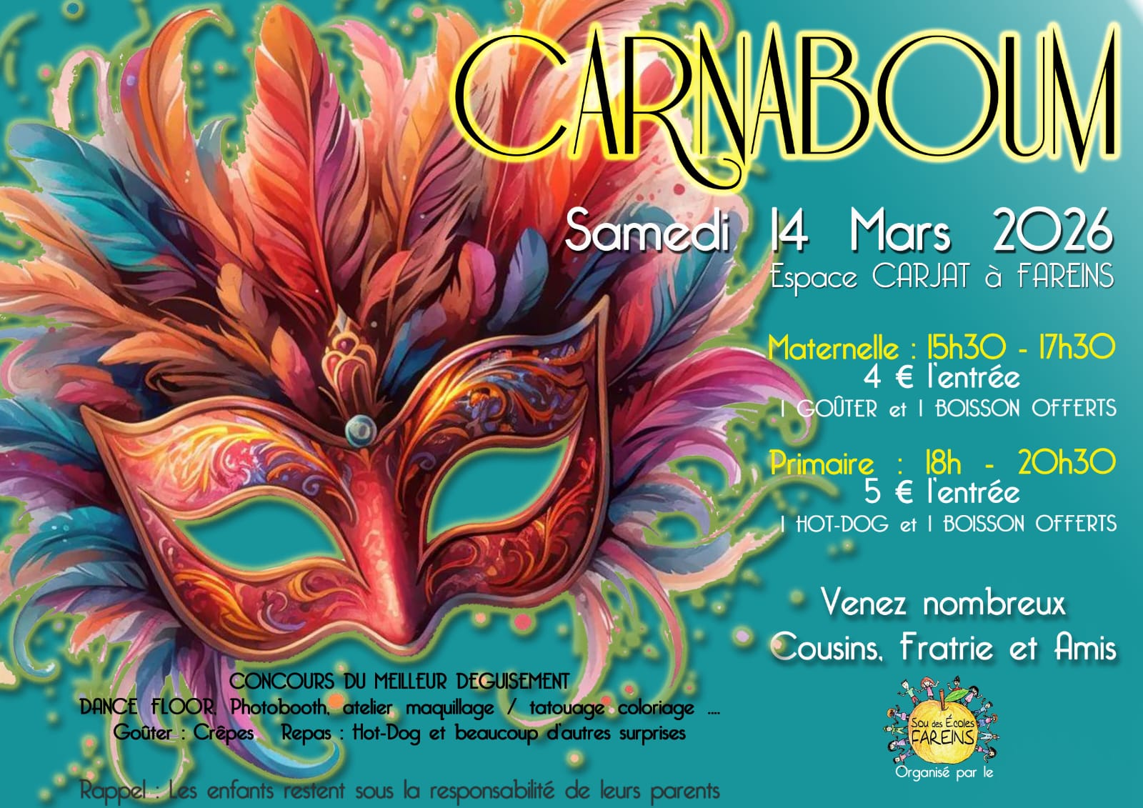 🎊 Préparez vos plus beaux déguisements et venez faire la fête à la Carnaboum !